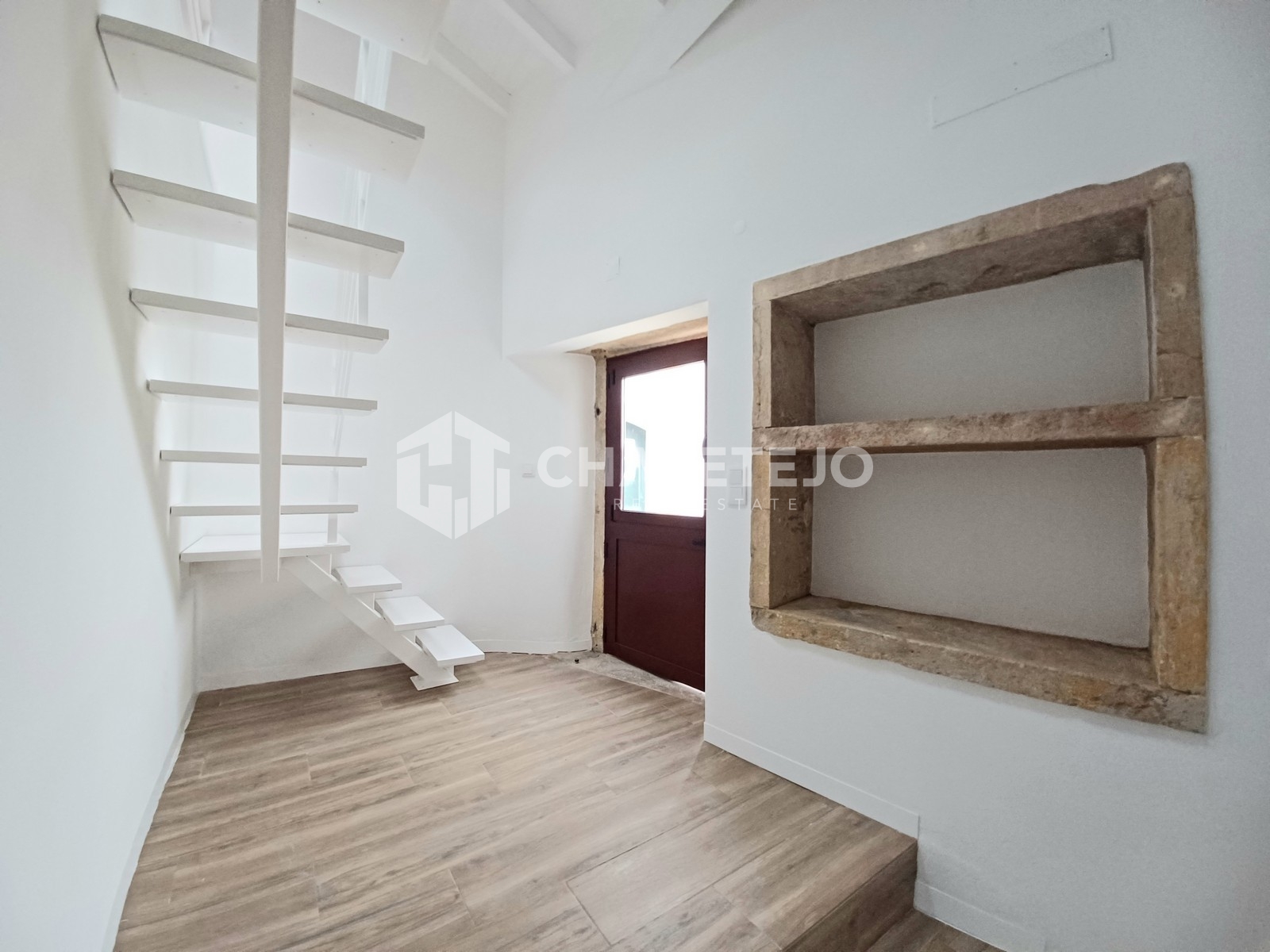 The property features two bedrooms with built-in wardrobes, a bathroom with shower, and a spacious and bright open-plan living area, where the kitchen blends harmoniously with the living room. It also includes a versatile mezzanine, perfect as an additional bedroom, office, or leisure area. The carefully preserved original stone details give the house a unique and authentic character, enhancing both the interior and exterior spaces.