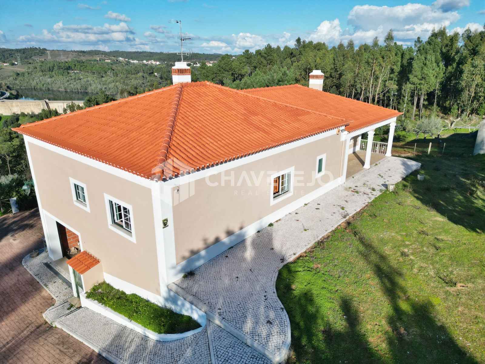 The villa occupies an impressive 16,520 sqm plot, with land gently sloping down towards the river. Part of the plot is divided by a road. The setting is truly special, ideal for those seeking privacy, open space, and a strong connection with nature.