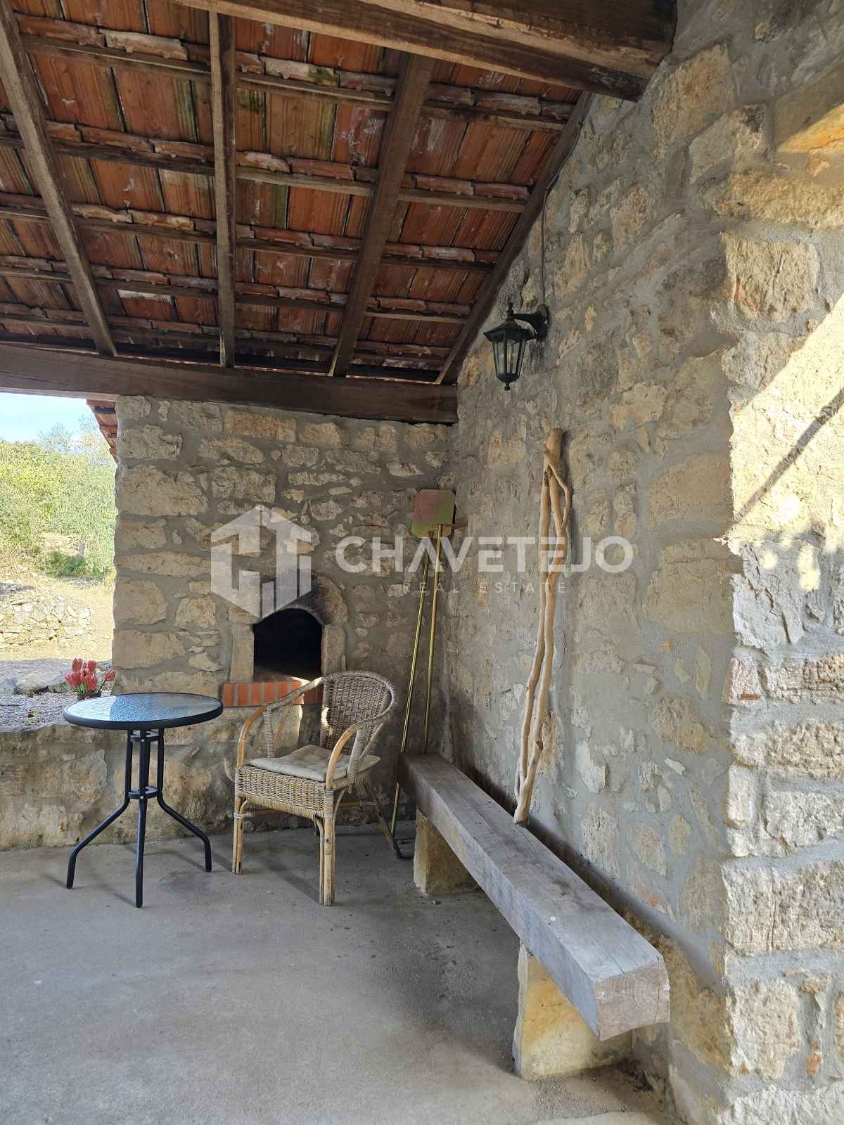 At the rear of the cottage, a charming covered patio offers the perfect setting for outdoor dining and relaxing while enjoying the tranquil surroundings. Beneath the covered alpendre, there is also access to a beautifully restored bathroom. Just behind the main house, you’ll find a traditional bread oven, still fully functional—a delightful nod to the property’s history and rural heritage.