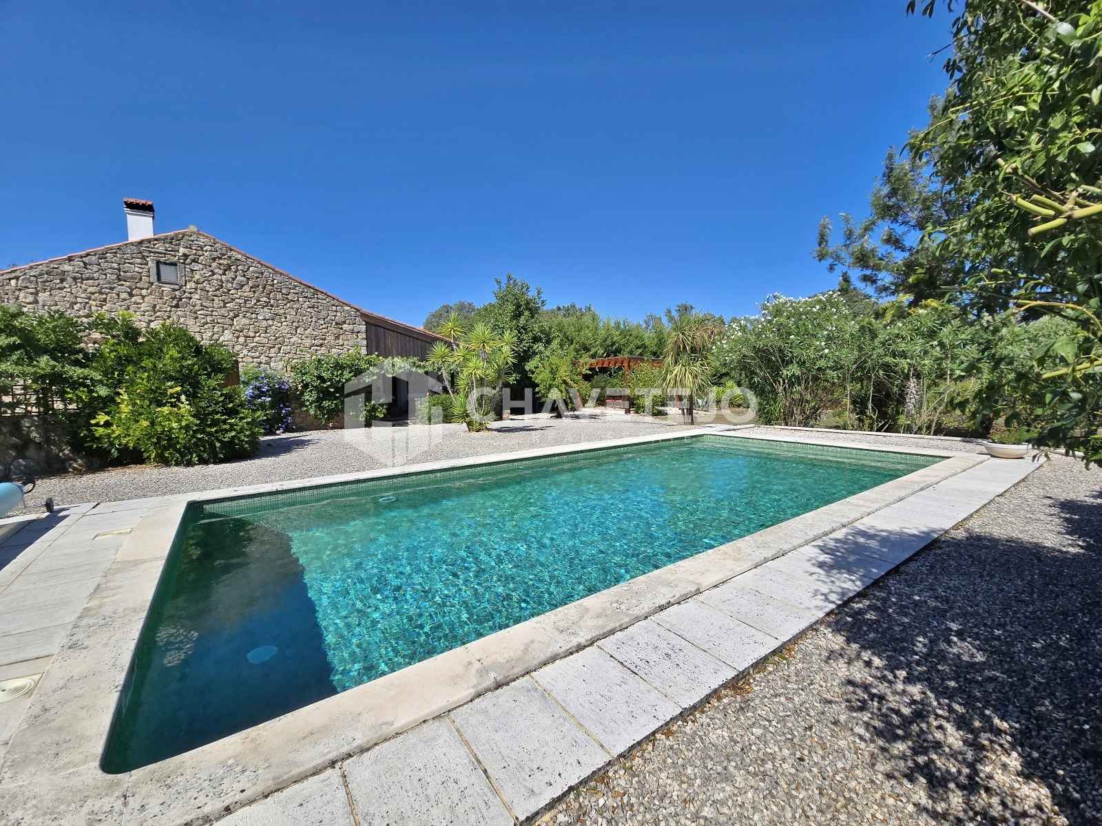 Tucked away in a peaceful setting yet only a short walk from the village of Chãos, this beautifully renovated three-bedroom stone cottage combines traditional charm with modern comfort. Set across two levels and offering 161 m² of living space, the home sits within 1,560 m² of landscaped gardens complete with a swimming pool.